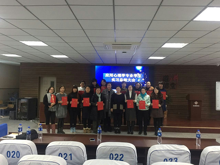最后,王晓艳书记就此次应用心理学专业2013级实习工作进行了总结讲话,并向优秀指导教师颁发了证书。对每位指导老师的辛勤付出表示真诚的感谢,也向全体实习生表达了最真挚的祝福。