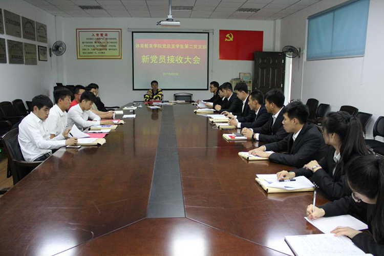 2017年6月2日,体教教育学院党总支学生第二党支部在体育教育学院会议室召开支部大会,讨论接收于朋志等9名同志为中共预备党员,李建辉等3名同志的转正问题,会议由党支部书记王彪同志主持,支部党员全部参加了会议。
