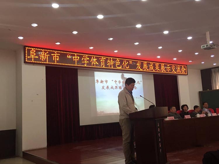 成果展示期间,郝庆威院长一行观摩了阜新市第二高中大课间、跑操和体育生业余训练展示,参加了体育特色化成果经验交流会。郝庆威院长在交流大会发言中对阜新第二高中体育特色发展给予了赞许,对今后继续加强双方合作提出了设想。阜新市体育局副局长杜鹃、教师进修学院副院长李春梅、阜新市第二高级中学校长李显余等在大会讲话中纷纷对我院为阜新市体育工作、阜新市第二中学体育特色校发展所给予的支持与帮助表示深深地感谢,并表达了继续加强合作的强烈愿望!