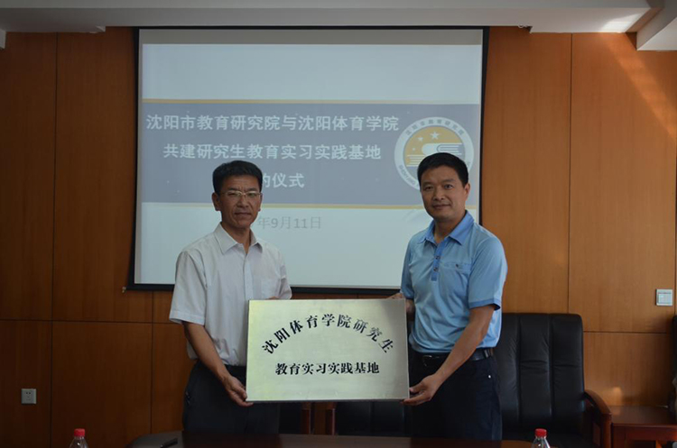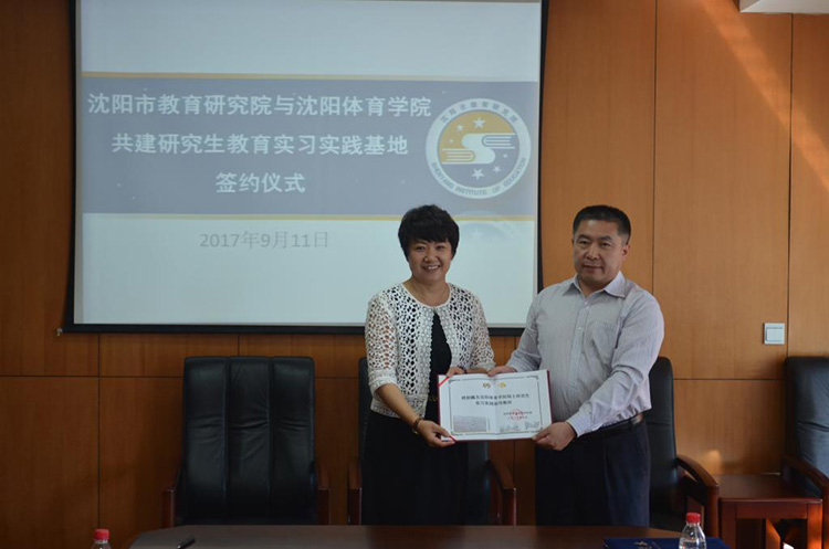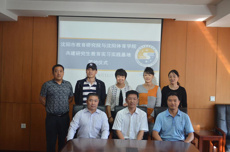 2017年9月11日,沈阳体育学院研究生部与沈阳市教育研究院研究生教育实习实践基地签订仪式在沈阳市教育研究院举行。体育教育学院院长郝庆威、研究生部副主任惠悲荷、副院长甘荔桔、办公室主任李丁皓、培养科科长郭岩、学校体育教研室主任刘留;沈阳市教育研究院副院长衣鹏、体育教研员郭巍、曲生平出席了签约仪式。签约仪式由沈阳市教育研究院李丽主持。
