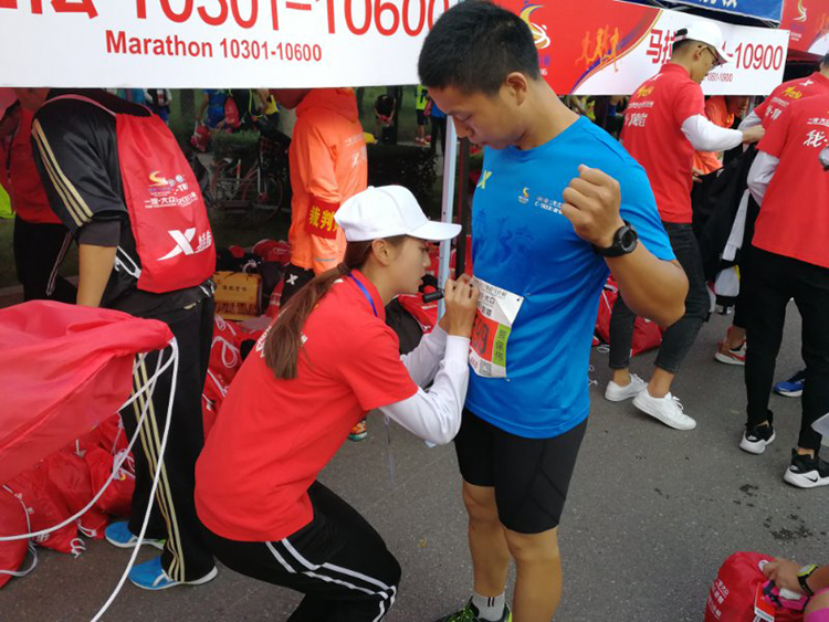 我校志愿者同学帮助运动员填写相关号码。