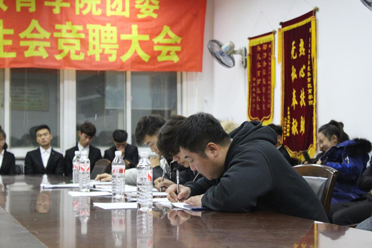 2017年11月16日—18日,体育教育学院团委举行第58届团委学生会成员公开选拔竞职演讲、答辩活动。体育教育学院团委书记姜少英老师、体育教育学院2017级辅导员张之怡老师出席活动并担任评委,竞聘大会由体育教育学院第57届团委学生会副书记滕明霖主持,体育教育学院99名学生报名参加学生会8个部门23个岗位的竞聘。