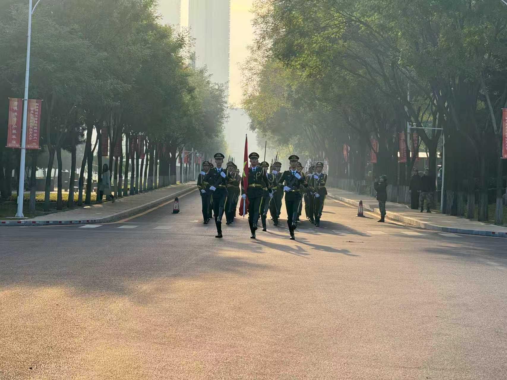 今年是中国人民抗日战争暨世界反法西斯战争胜利80周年,同时也是中华人民共和国成立76周年。当嘹亮的口号声响起,大学生国旗护卫队迈着铿锵有力的步伐,护送国旗入场。伴随着雄壮的《义勇军进行曲》,鲜艳的五星红旗冉冉升起。全体师生肃立,行注目礼,高唱国歌,表达对祖国的无限热爱与崇高敬意。