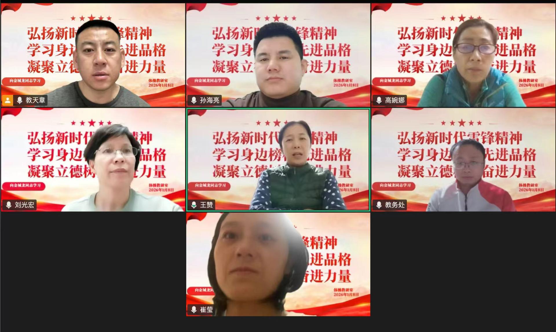 为深入贯彻落实全省向金城龙同志学习的通知要求,传承弘扬新时代雷锋精神,引导全院师生汲取榜样力量、勇担时代使命,近日,体育教育学院党总支组织各党支部开展向金城龙同志学习线上专题活动,全院教师和学生党员参与。