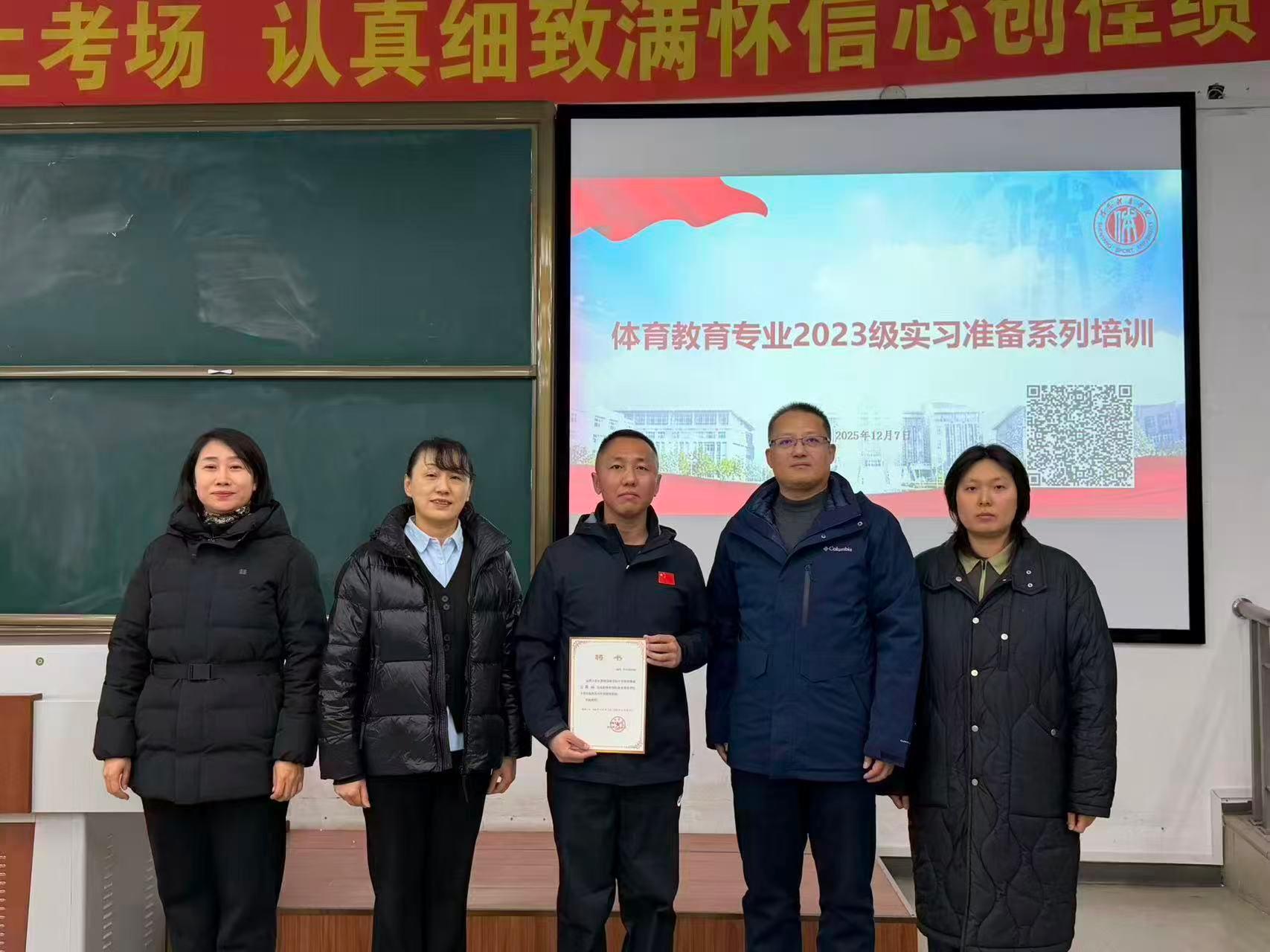 甘荔桔为国屾颁发了“体育教育专业大学生校外实习实训指导教师”聘书。同学们纷纷表示将把所学运用到实习实践中,锤炼专业技能,成长为新时代合格体育教师。
