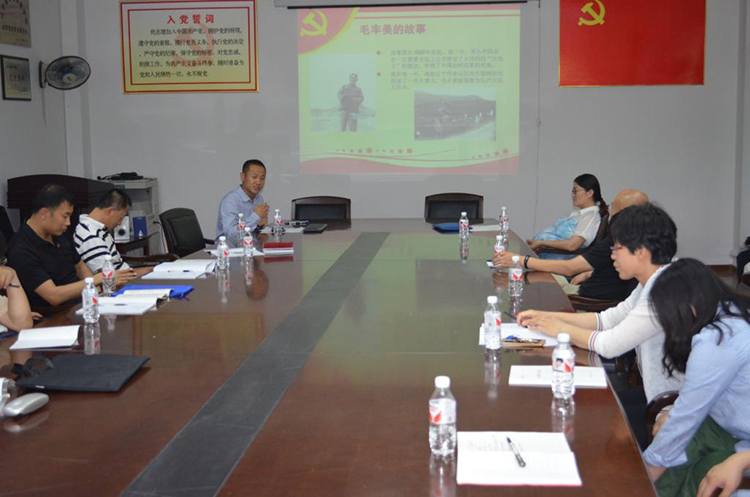 专题活动第二部分:“学习毛丰美,做合格党员”。江志强从毛丰美的工作经历出发,结合许多鲜活的实例,为大家讲述了辽宁丹东山区的大梨树村是如何在毛丰美的带领下一步一步,从一穷二白走向致富的发展历程。在学习视频中,大家看到了一名普通的基层党员干部十几年如一日,不忘初心,一直与群众劳动和战斗在第一线的场景,用生命诠释了全心全意为人民服务的党的根本宗旨,感动了与会党员。