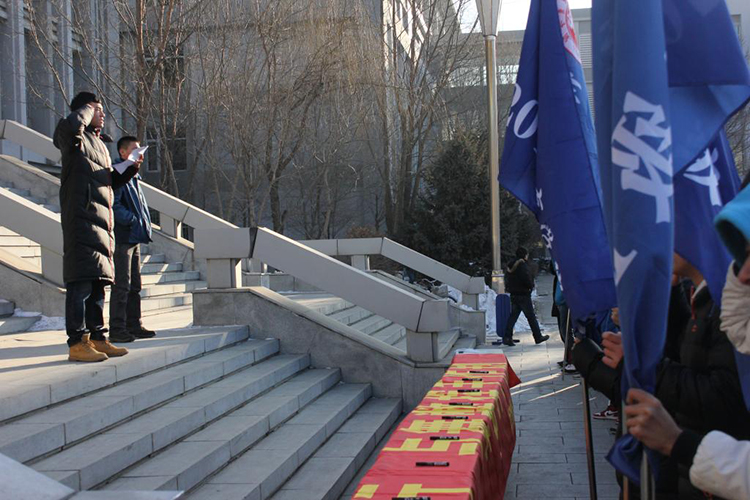 诚信是中华民族的传统美德,是个人的立身之本。随着考试周的临近,体育教育专业2014级全体同学于2014年1月7日上午9:00在图书馆门前开展了诚信考试动员及宣誓活动。