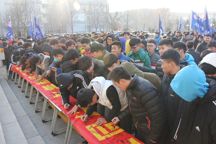 会上全体同学庄严宣誓:“用我的认真努力,积极复习迎考;用我的自觉自律,维护考场纪律;用我的自尊自爱,参与公平竞争;用我的诚信人格,倡导优良考风;用我的辛勤付出,不辜负家人和老师的期望;诚信考试,拒绝作弊。”,宣誓结束后,同学们在诚信考试条幅上签名。
