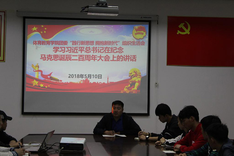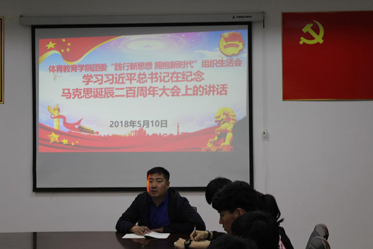 2018年5月10日,体育教育学院团委召开“践行新思想,拥抱新时代”学习习近平在纪念马克思诞辰二百周年大会上的讲话组织生活会,体育教育学院团委书记姜少英同志出席会议并讲话,体育教育学院团委学生会学生干部、各年级学生会学生干部代表56人参加了会议,会议由体育教育学院团委学生会主席李文作同学主持。